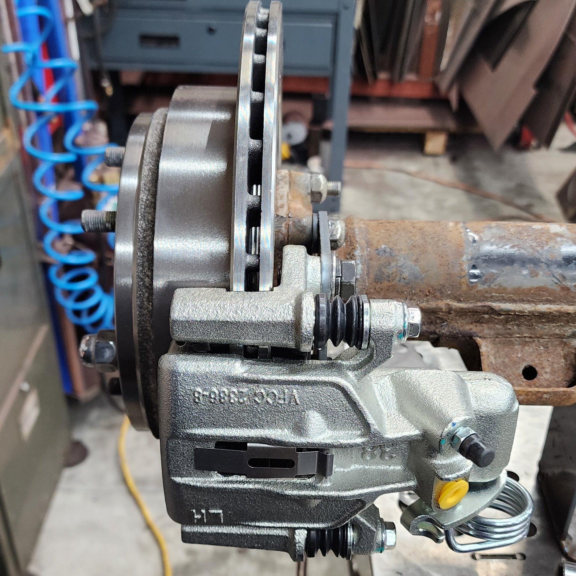 This kit converts the rear drum brakes to disc brakes and comes with the following parts: